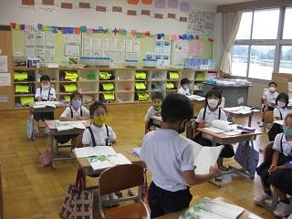 今日の5限目は、1年生にとって今週最後の授業でしたが、最後まで集中力が途切れずよく頑張っていました。国語の授業では、「やくそく」という題材で、登場する「あおむし」の気持ちについて考えていました。発言も積極的にしていました。手の挙げ方や聞き方もばっちりできていました。