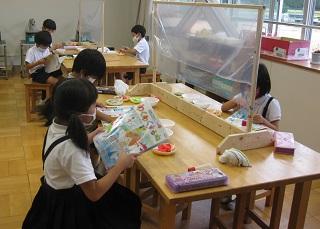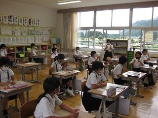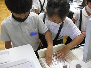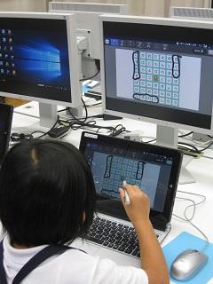 今日はICTサポーターさんがいらっしゃいました。1年生と3年生がパソコン教室で学習しました。1年生はの様子です。ものの名前を探してタッチペンで丸を付けているところです。使ったペンもペン先を同じ向きにして片付けます。