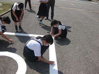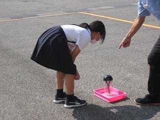 4年生の理科の授業です。空気の力につい学習しています。空気鉄砲のたまはどんなときによく飛ぶかを考えていました。二人ずつ実際にとばして距離を測っているところです。