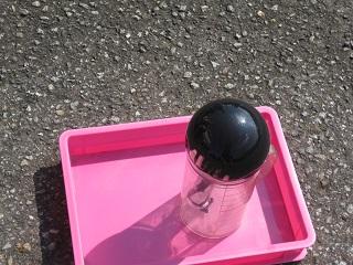 手作りの教具です。黒い面に空がうつって、雲の占める割合がわかります。