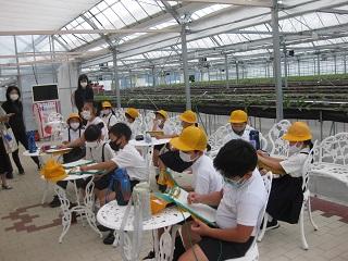 3年生がいちごファームHakusanに行ってきました。社会の教科書には「あまおう」を栽培している農家が出ています。学習して新たにでてきた質問に答えていただきました。そして、7月に「子株取り」をした苗の定植も体験させていただきました。ありがとうございました。