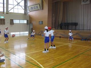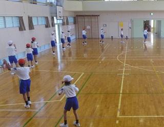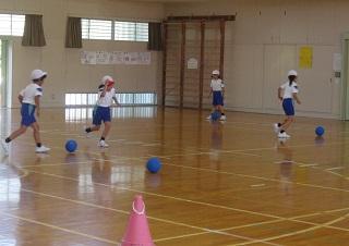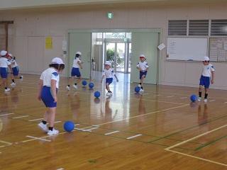 体育の授業です。ボールを使った運動をしていました。