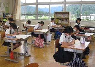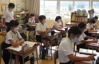2年生の書写の授業です。硬筆書写コンクールの課題に取り組みました。中心線を意識して書く練習をしました。