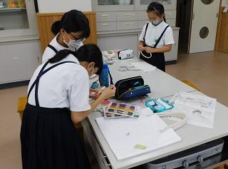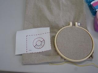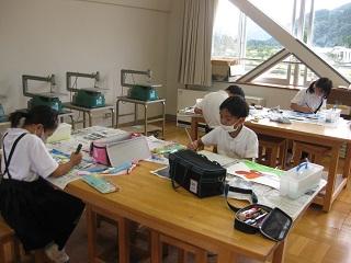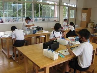 手芸クラブ。袋などに刺繍をしていきます。