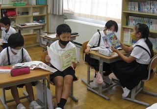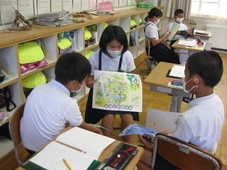 4年生の国語の授業です。それぞれのパンフレットに共通することを出し合ってパンフレットの良さや工夫について考えていました。