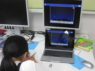4年生の理科。ICTサポーターの先生にも教わりながらパソコンで夏の星の動きについて学習しました。