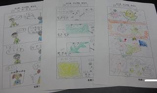 イラストクラブ。今日は4コマ漫画を描いていました。