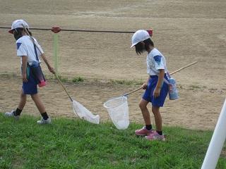 1年生は生活科の「いきものとなかよし」の単元で、虫を探したり捕まえたり、観察したりします。今日は終わりの会の時間にトノサマバッタが脱皮している様子をちょうど見ることができました。
