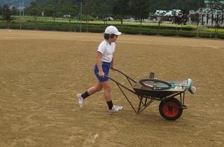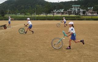 2020年9月10日 15時46分心配していた雨もあがり、1限目に一輪車リレーの練習をすることができました。1~3年生は一輪車を押して、4~6年生は農作業用一輪車に一輪車をのせてリレーします。