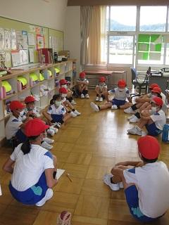 今日は講師の先生に来ていただき、運動会で踊る「うれっしゃ鳥越」と「じょんから踊り」の練習をしました。みんな、がんばっていました。暑い中、教えていただきありがとうございました。