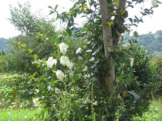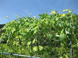 プール近くの畑でカラスウリの花がきれいに咲いていました。どんな実がなるのか楽しみです。