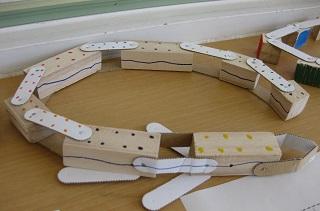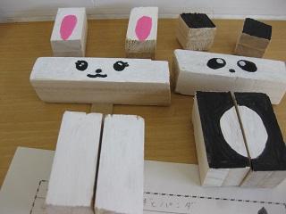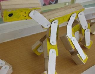 4年生の図工の作品です。切った木をつなぎ合わせて作りました。