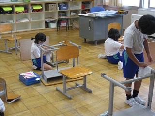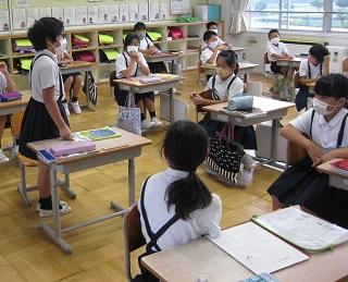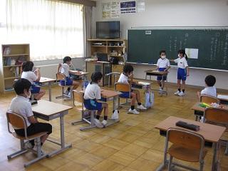 2年生は夏休みに頑張りたいことを発表していました。大掃除では自分の机やいすもきれいにしました。
