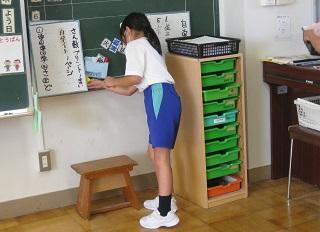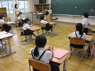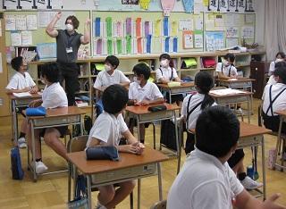 2年生は、学活の時間に1学期を振り返って、自分が成長したと思うことを発表したり、ゲームをしたりしていました。