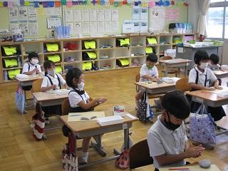 梅雨が明けました。暑い日になりましたが、子ども達は暑さに負けず頑張って学習に取り組んでいました。今日は今年度2回目の読み聞かせを行いました。