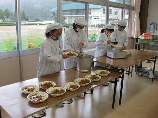 4年生は、自分が成長したことを発表していました。給食の準備もとても手際がよいです。