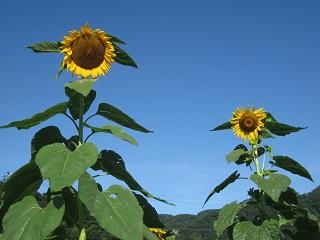 さわやかな朝です。畑のひまわりも大きくなっています。たくましさを感じます。これからだんだん気温も上がっていきますので、体調には十分気をつけて下さい。