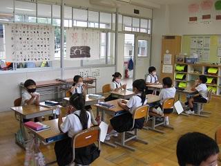 1年生は計算カードによる学習が始まりました。お互いに問題を出し合っています。