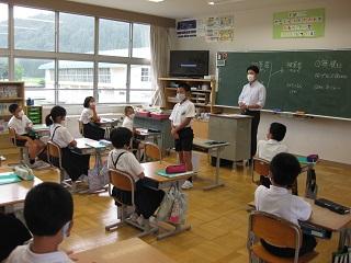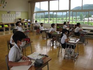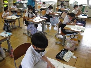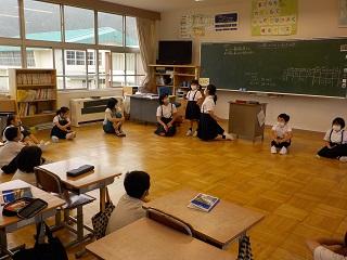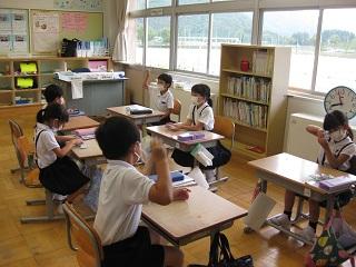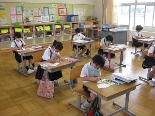 6年生は理科の時間、聴診器で自分の心臓の音や心拍数を調べていました。学活では月曜日にあるたてわり活動の準備をしていました。