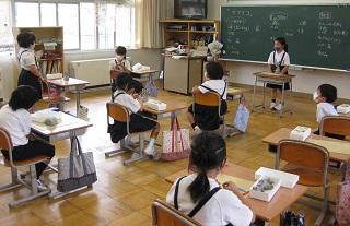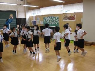 1年生の国語です。ひらがなも上手になりました。音楽では先生のタンバリンに合わせて楽しく動いています。みんな元気いっぱいです。