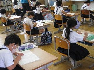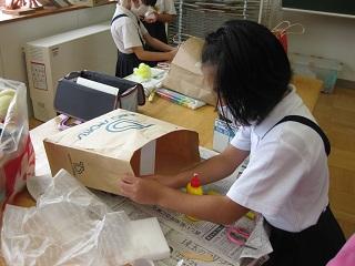 3年生は理科の植物の学習を学級園でしていました。オジギソウ、フウセンカズラ、ホウセンカなどを育てています。草むしりもしました。図工では紙袋の中の世界が徐々に出来上がってきていました。