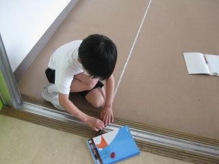 3年生の図工では、紙袋の中に想像した世界を表現していました。算数では長さの学習で、プレイルームの大きさをメジャーで測っていました。