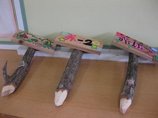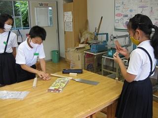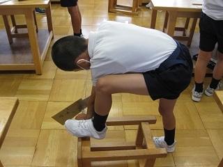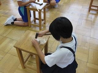4年生は角棒を適当な長さに切って、紙やすりで磨き、それをつなぎ合わせて動物などの形にするという授業をしていました。釘を打つ練習もしました。