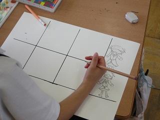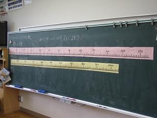 2年生は算数でひとメモリの大きさがどれだけか考えていました。図工では主人公を決めて、主人公が活躍するストーリーを考えていました。