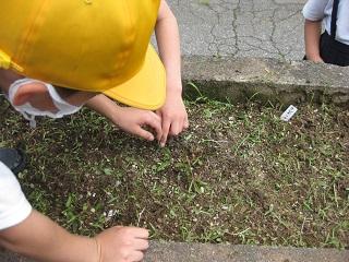 畑の様子です。サツマイモの葉がどんどん大きくなっています。校務士さん、5・6年生が草むしりをしてくれました。ありがとうござます。