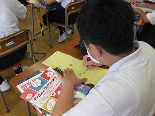 5年生は外国語の授業で時間割を作っていました。教科の名前を英語で何というかが分かりました。家庭ではいろいろな縫い方を習っていました。これからフエルトで小物を制作していきます。