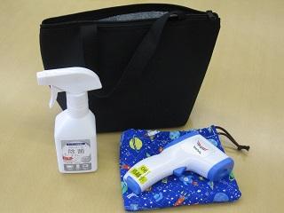 今日は、新しい生活様式での学校生活に向けての準備をしました。非接触型の体温計や除菌スプレーも使いやすいように学級ごとバッグに入れます。体温計を入れるための袋を手作りしました。また理科室などでは、どうしても対面になることが考えられるので、ビニールを張った仕切りも作っています。
