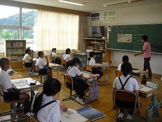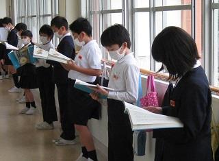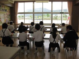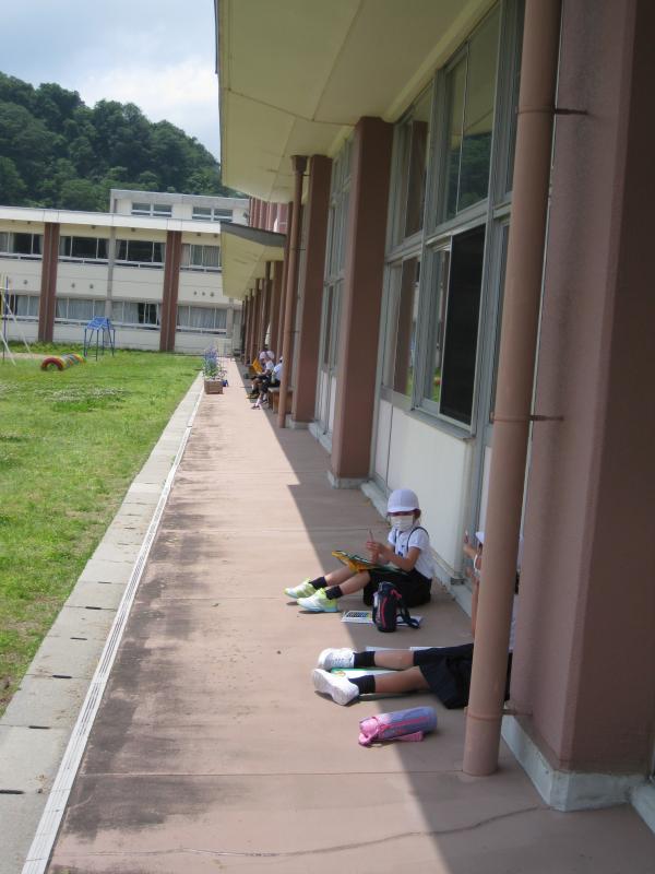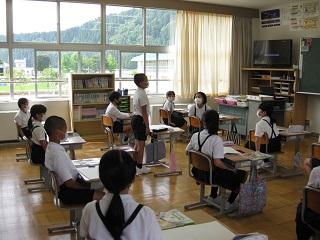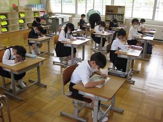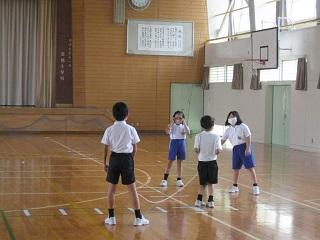3・4・5・6年生の授業の様子です。どの学年も真剣に学習に取り組んでいました。3・4年生は算数の授業をしているところです。5年生は国語の授業で廊下で間隔をとって音読の練習をし、そのあと先生に聞いてもらっていました。とても表現力豊かに読んでいて感心しました。6年生は体育の授業をしていました。体育の授業ではマスクをはずすため、密接しないようにしています。