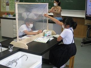 6年生の理科の授業。間仕切りがあるので安心して授業を受けることができます。