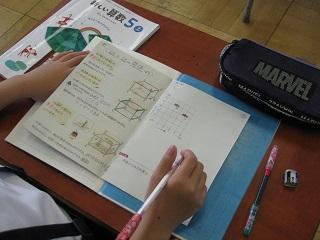 5年生は算数で立体について学習しています。「自学ノート」の展示もしていました。自分で問題をつくったり、図や絵を使ってまとめたりと、とても工夫されていました。