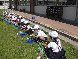 さつまいもの苗を植える時期に学校が臨時休業となったので、今年は教職員でさつまいもの苗を植えました。学校が再開したら、みんなで世話をして大事に育てていきましょう。収穫が楽しみですね。