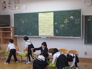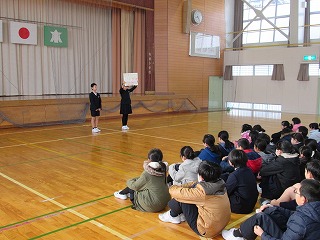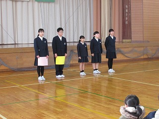5年生と1・2年生が、6年生を送る会の全員合唱曲を