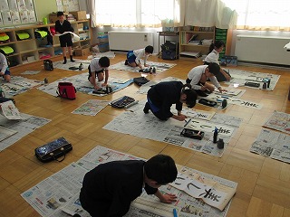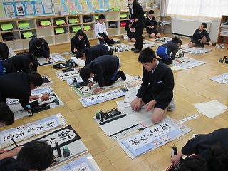 学年ごとに、課題を持って、書き初めにも取り組み、冬休みの