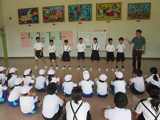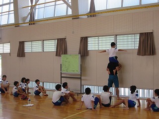 今年から、集団演技(スタンツ)の枠組みを、4・5・6年生と