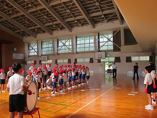 運動会に向けて、1・2・3年生も、集団演技の練習を始めました。