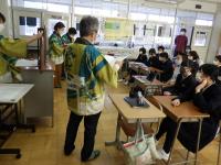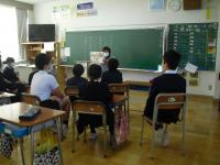 今日は、うれっしゃ鳥越のみなさんに6年生の社会の授業で一向一揆についての紙芝居をしていただきました。