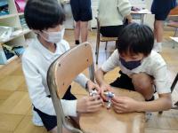 5年生は社会の工業の学習で、バンダイのプラモデルを使った学習をしました。