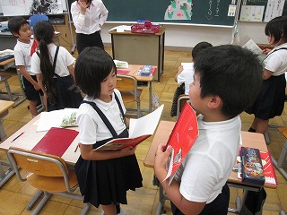 読書の取り組みで、本の冊数が、50冊、150冊に達した子ども達を