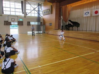 『校歌斉唱』の内容で行いました。写真は、激励会での『演技』です。