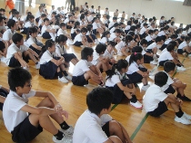 校長先生からは、平和のためにみんなができることは何かというお話がありました。それは、自分のまわりの人と仲良くするということでした。友だちに意地悪や悪口をいったり、時には叩いたりということがあります。そんなことをなくすことが、平和への第一歩だというお話でした。