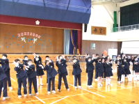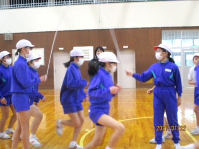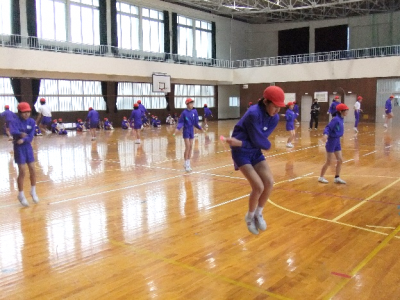今までに練習してきた「得意技披露」と各クラス対抗の「8の字」をしました。クラスで協力した8の字では,新記録を出し,クラスの仲間と喜びを感じることができました。また,新たな技や目標に向かって頑張ってほしいと思います。