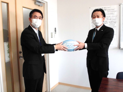 AIGジャパン・ホールディングス リージョナル・マーケティングの方から,タグラグビーキットをいただきました。