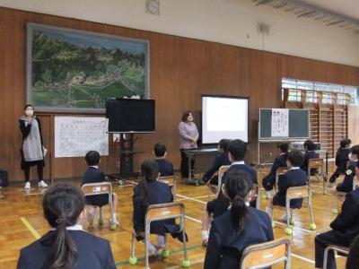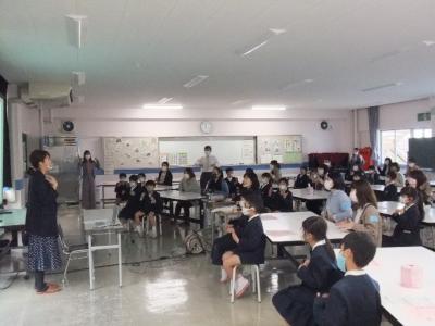 1,2年生は,手話の体験をしました。あいさつや数,色をつかったクイズに楽しみながら教えていただきました。これまで,今月の歌にも少しずつ手話を取り入れて歌っていますが,講師の方の手話や様子をみて,さらに手話に興味をもつ児童もいました。