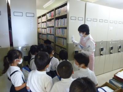 2年生は生活科「みんなで つかう まちの しせつ」の学習で,鳥屋図書館に見学に行ってきました。本の並び方や,本棚について調べたり,司書の先生に質問したりしました。普段は入ることのできない書庫に入らせてもらい,レバーで動く棚にみんな驚いていました。