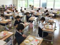 1年生は栄養たっぷりの給食をもりもり食べました。