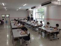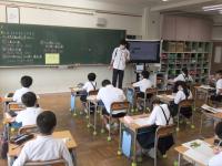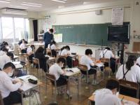 4年生は隣との間隔を十分にとって授業をしています。